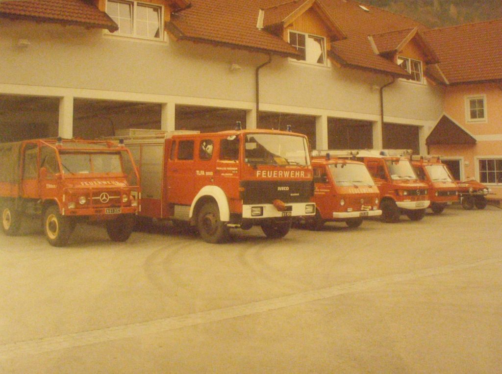 Die erste Heimstätte befand sich im alten Gemeindedepot. Man hatte damals noch keine Uniform und als Löschgeräte nur Leiterwägen, geliehene Pferdegespanne, Löscheimer, Bottiche und Feuerpatschen.