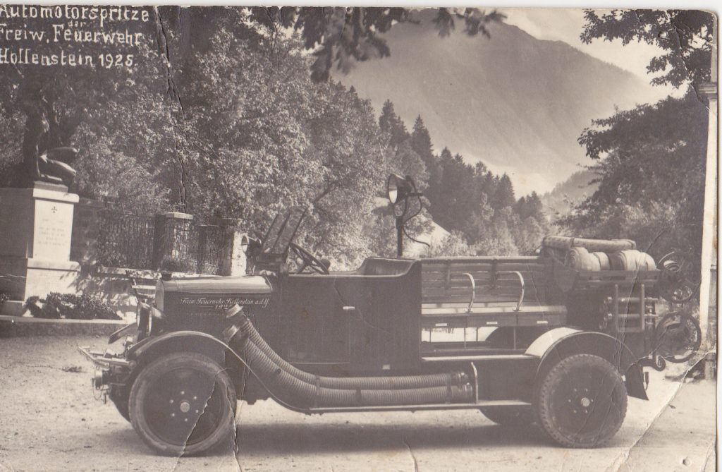 1925 wurde die erste Automotorspritze gesegnet. Bei der Fahrt von Wien nach Hollenstein hatte die Mannschaft, die das Auto geholt hatte, viele Stunden Verspätung. In beinahe jedem Ort, durch den sie gefahren sind, musste gehalten werden. Weil sich alle das hochmoderne Fahrzeug anschauen wollten.