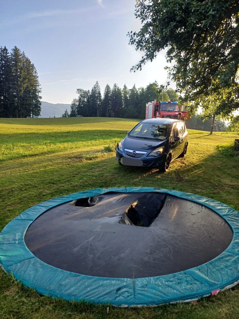 Am Königsberg verirrte sich eine Person samt PKW und aus unbekannten Gründen endete diese Fahrt auf einem Trampolin.
