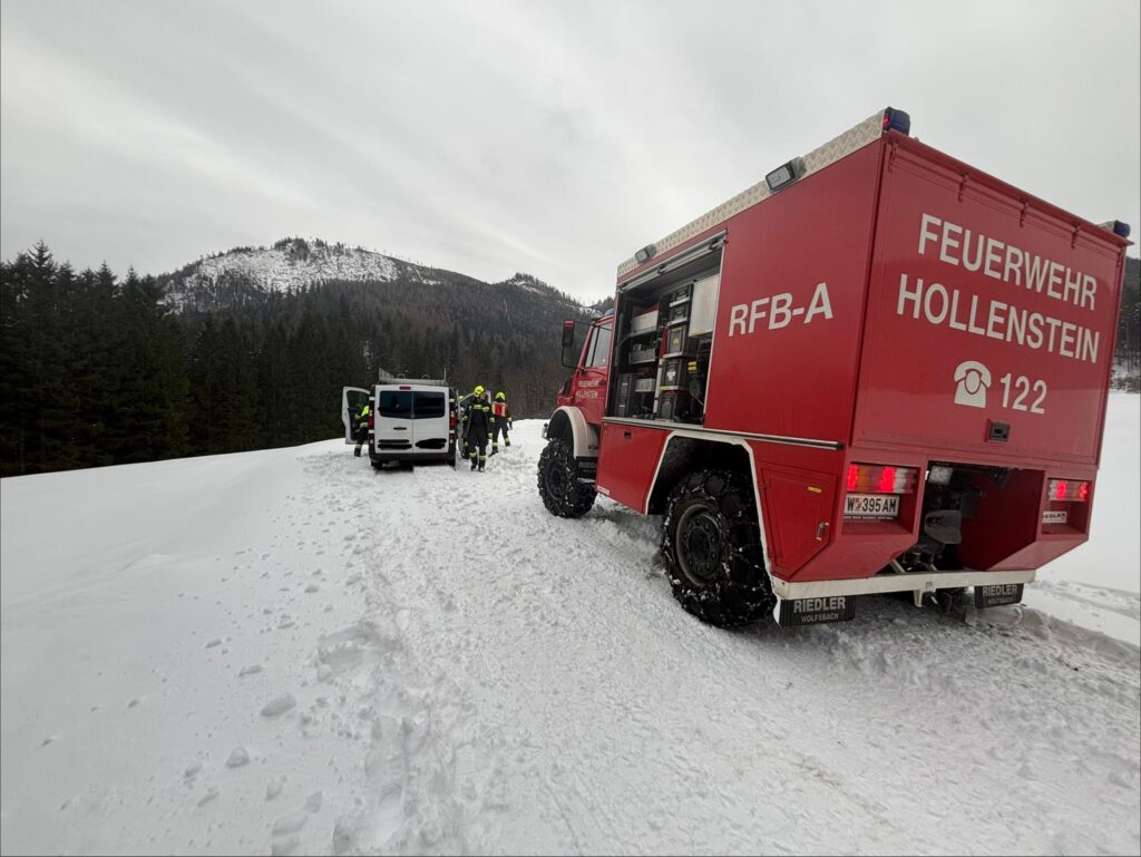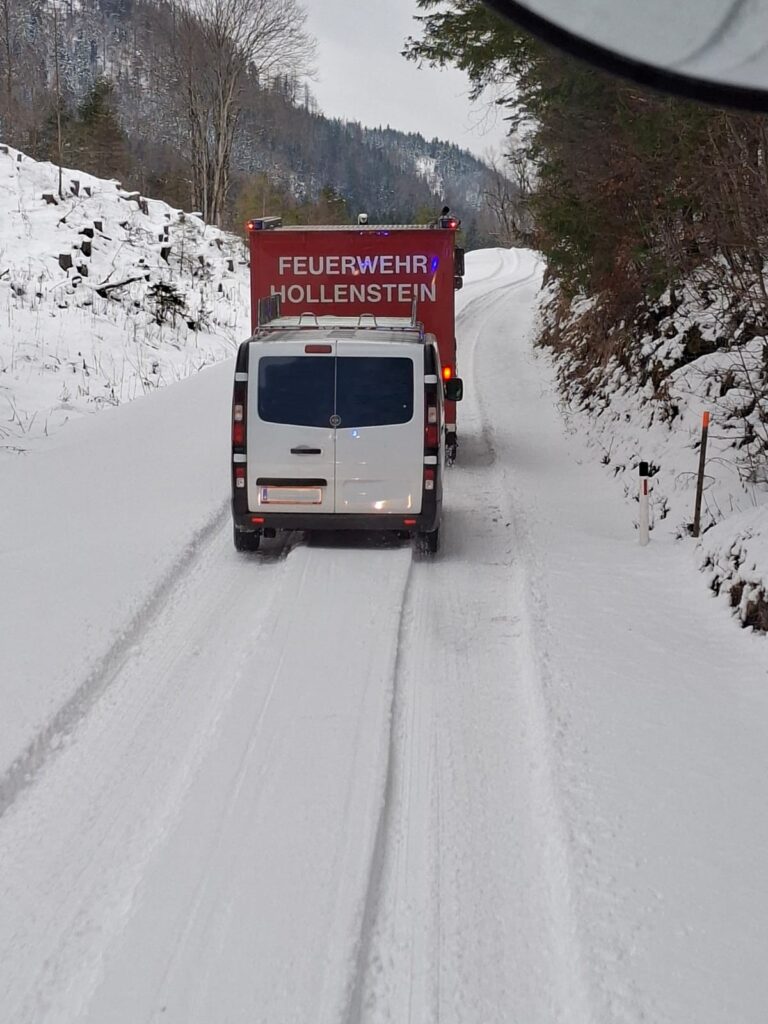 Ein Kleintransporter kam auf komplett verschneiter Fahrbahn nichtmehr weiter und blieb mit seinem Fahrzeug im Schnee stecken. Die FFH konnte den Kleinbus bis zur Promau abschleppen, danach konnte dieser seine Fahrt fortsetzen.