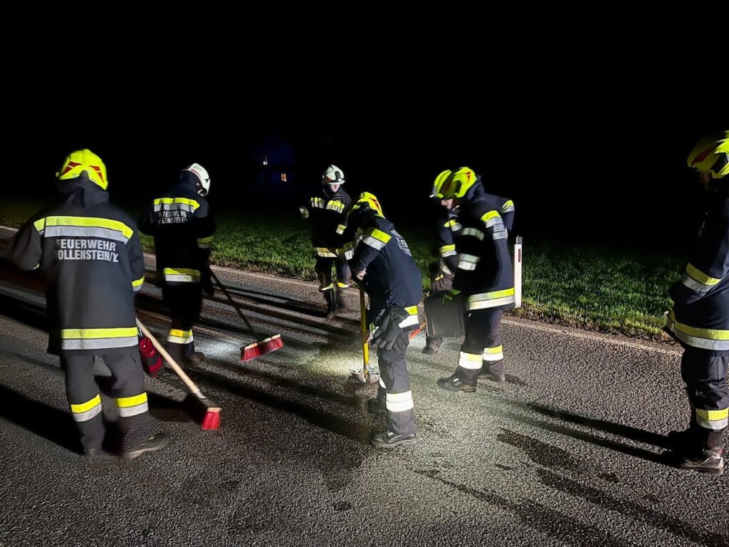 Die FFH sicherte die Unfallstelle ab und säuberte diese. Weiters unterstützen wir den zuständigen Jäger bei der Suche nach dem beteiligtem Wild, das nach dem Unfall noch die Flucht in den Wald ergriffen hatte.