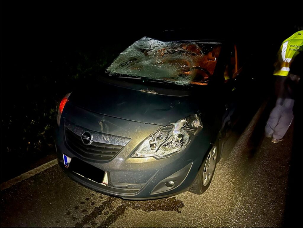 Ein PKW war nach einem Wildunfall stark beschädigt worden und zusätzlich trat auch Kühlflüssigkeit aus.