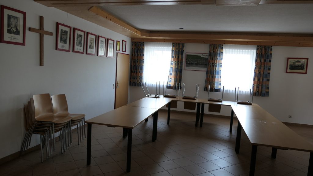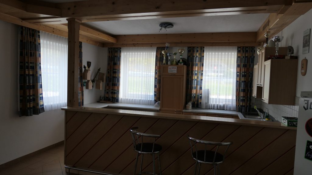 Im 1. Stock breitet sich die Festhalle mit Küche und Bar aus wobei sich hier noch der Zugang zum Dachboden befindet. Seit neuestem gibt es außerdem einen Bereitschaftsraum und 2 WCs im 2. Stock.